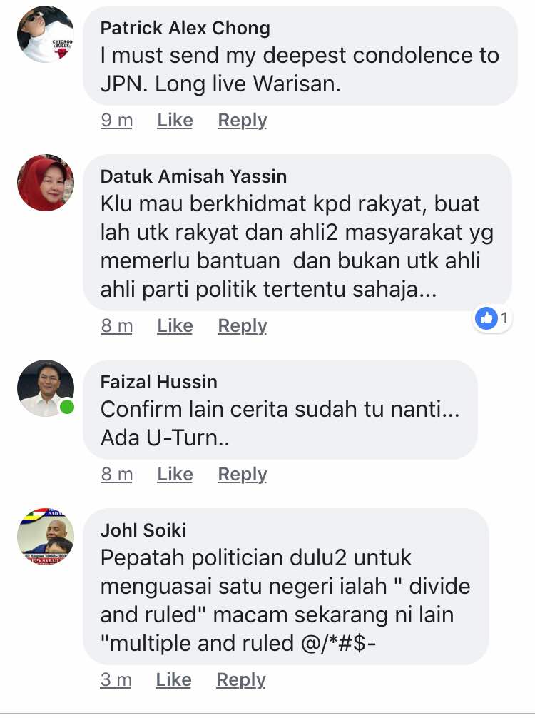 Datuk Amisah Yassin dalam komen facebooknya menulis buat program khidmat rakyat buat untuk rakyat dan ahli masyarakat bukan untuk ahli parti sahaja.