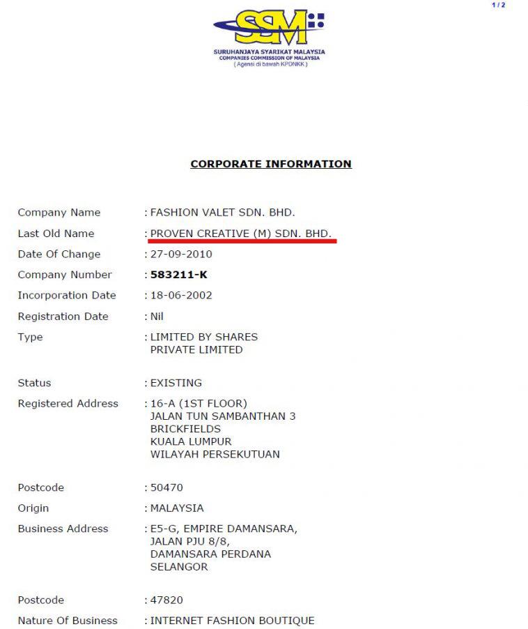 Jangan lupa syarikat Fashion Valet Sdn Bhd itu adalah asalnya milik Dato’ Yusof Jusoh, Proven Creative (M) Sdn Bhd sebelum ditukar nama kepada Fashion Valet Sdn Bhd. Sehingga hari ini pun Proven masih antara pemegang saham dalam Fashion Valet.