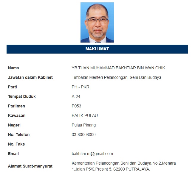 Kepada Timbalan Menteri Pelancongan, Seni dan Budaya, YB Tuan Muhammad Bakhtiar Bin Wan Chik elok dia fokus kepada tugasnya sebagai timbalan. Selain tugas hakiki ‘menjawab soalan’ parlimen bagi pihak menteri mungkin boleh sedikit dipertanggungjawabkan membantu menteri melalui jawatankuasa atau badan berkanun yang ada di Kementerian. Atau lebih baik fokus kepada isu dalaman PKR, Video Semburit Azmin-Haziq. Main ‘surat layang’ ni budak-budak sahaja.