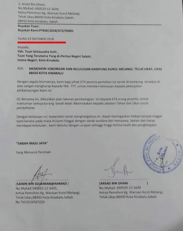 Surat dihantar kepada TYT Sabah. Surat ini sejak Oktober 2018 namun tular November 2018