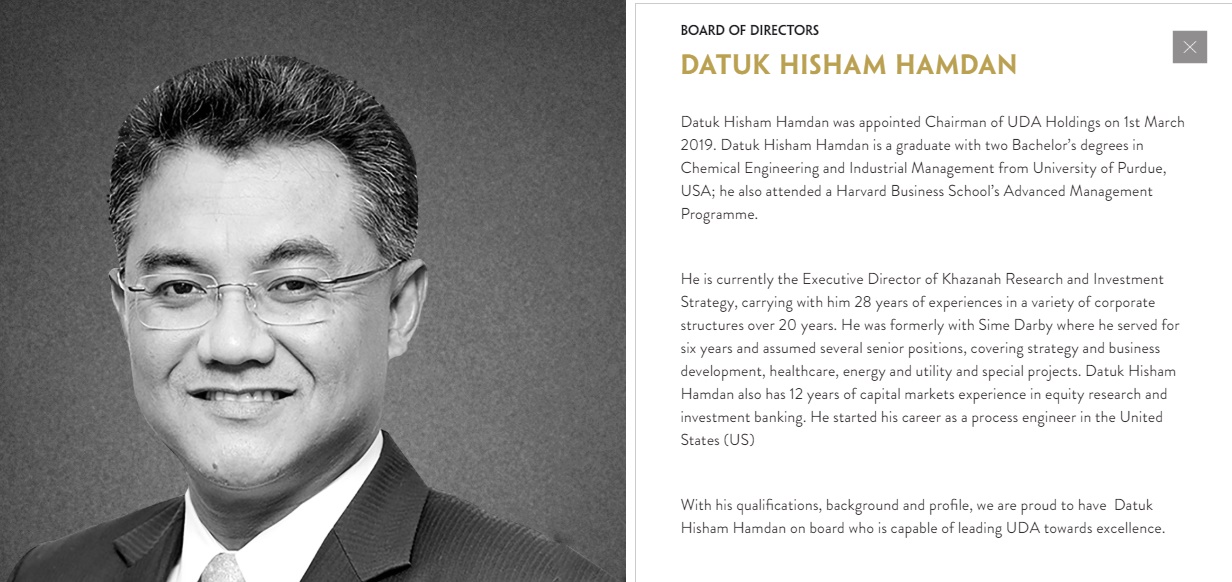 Datuk Hisham Hamdan bulan mac lalu diumumkan oleh Kementerian Pembangunan Usahawan (MED) sebagai Pengerusi UDA Holdings Berhad (UDA) yang baharu.