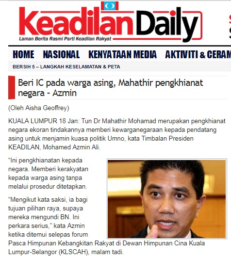 “Dr Mahathir dan parti politik lain ingin menjatuhkan Umno-BN dengan 'Agenda Malaya' supaya mereka boleh terus berkuasa di Sabah dan mengeksploitasi ia sebagai negeri orang suruhan”. katanya