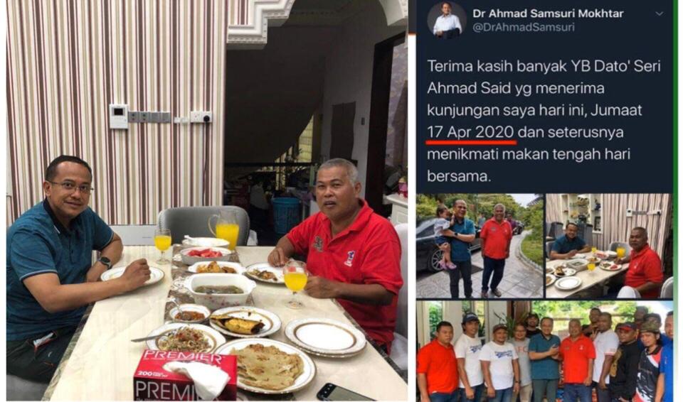 Dr Ahmad Samsuri memuat naik gambar itu dalam twitter rasminya. Paparan gambar itu mengundang rasa tidak senang netizen tentang perlanggaran Perintah Kawalan Pergerakan dikalangan pemimpin di negara ini.