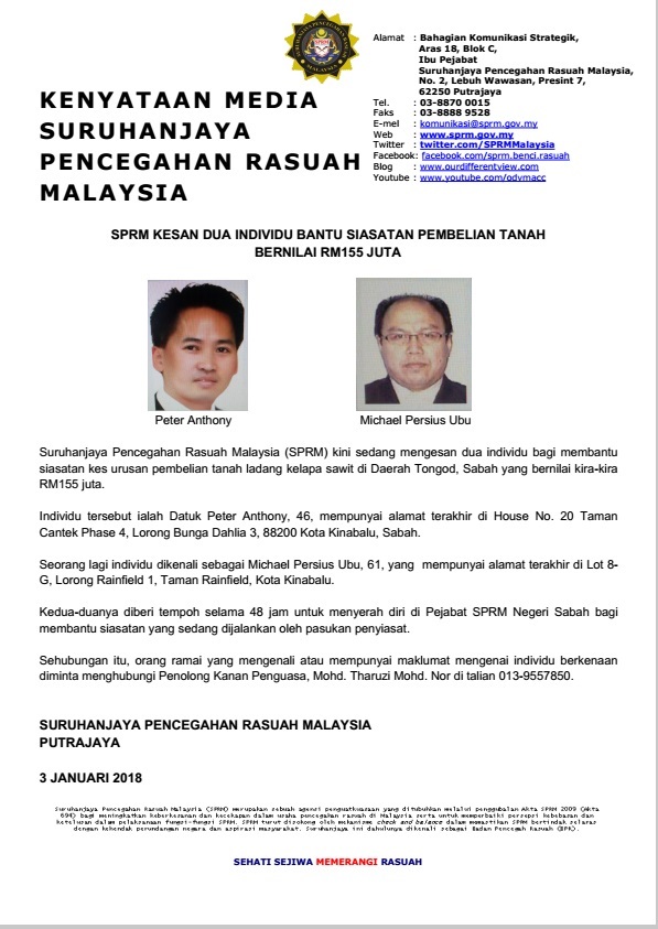 [ARTIKEL BERKAITAN- 3 JUN 2020: Michael P Ubu ditangkap, Peter Anthony Menteri Warisan diberi Notis SPRM?]