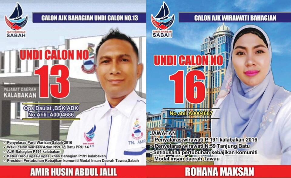 Penama atas nama Rohana Maksan yang kini adalah Ahli Jawatankuasa Wirawati Bahagian Kalabakan merupakan penyelaras Wirawati P.191 Kalabakan 2016 dan Penyelaras Wirawati N.59 Tanjung Datu yang kini bersama Rina Jainal (Ketua Wirawati) calon Warisan DUN Kukusan