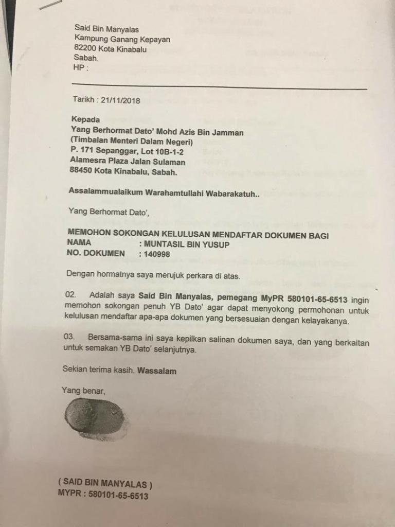 Dilaporkan ribuan surat begini diarah Shafie luluskan kepada Pengarah JPN Sabah terutama pengikut Warisan dan orang Semporna