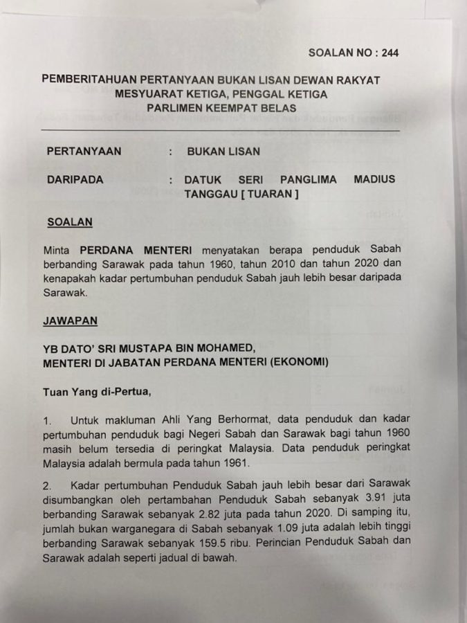 Bagaimana kes yang baharu? 18 Disember lalu Menteri di Jabatan Perdana Menteri (Ekonomi), Datuk Seri Mustapa Mohamed mengesahkan seramai 1.09 juta penduduk bukan warganegara kini berada di negeri Sabah berbanding 159.5 ribu penduduk bukan warganegara yang di negeri Sarawak.