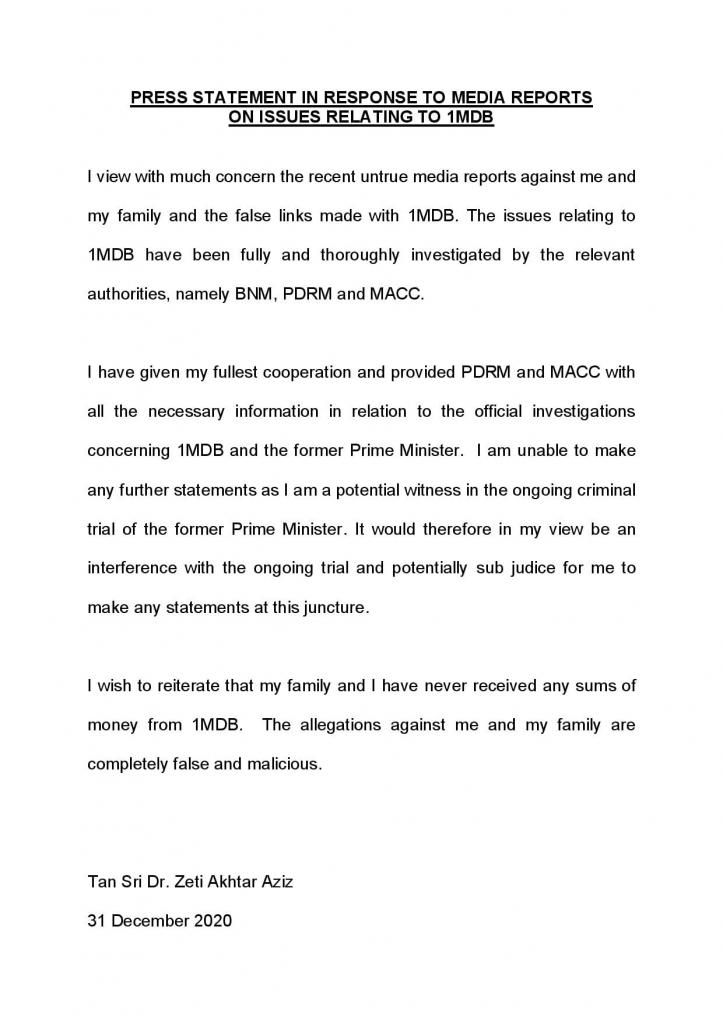 Sebenarnya kenyataan balas Zeti Aziz yang kini masih Pengerusi PNB sangat dinanti-nantikan bagi membuat penafian. Reaksinya pasti akan menarik perhatian media dalam dan luar negara mengenai tahap integriti Zeti Aziz.