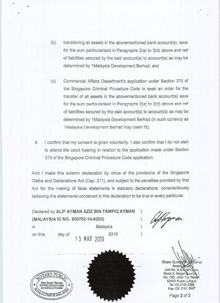 Dalam pada itu, SD berkenaan menyatakan suami dan dua anak lelaki Zeti BERSETUJU menyelesaikan isu dana 1MDB itu dengan kerajaan Singapura.