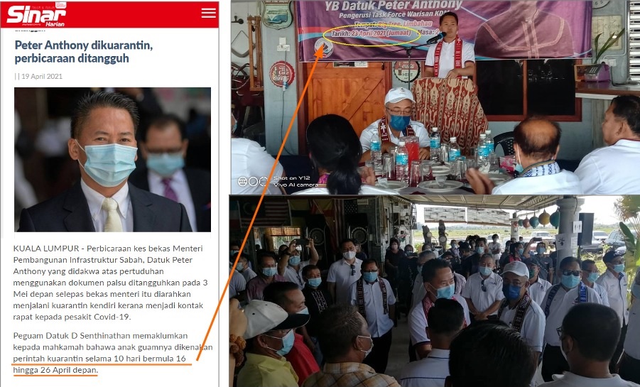 Bagaimana pun rakyat Sabah mempersoalkan bagaimana Peter boleh datang ke program Sembang Mesra Pemimpin Masyarakat KDM Limbahau pada 23 April 2021 sedangkan masih dalam tempoh kuarantin.