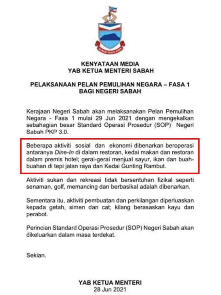 [ARTIKEL BERKAITAN- SOP terbaru PKPB dan Hari Raya Sabah ]