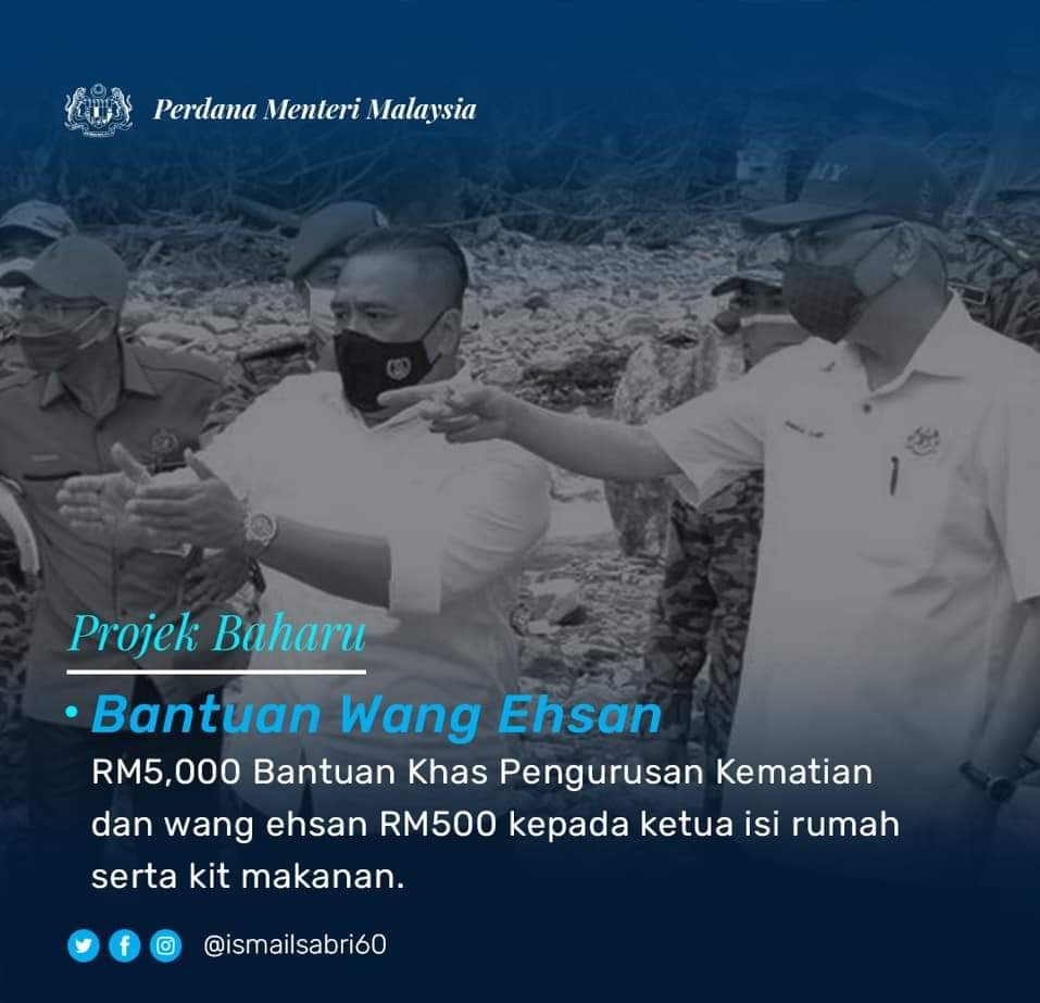 Mengulas lanjut, Ismail Sabri turut mengumumkan peruntukan sebanyak RM500 kepada setiap keluarga yang terjejas akibat kejadian tersebut.