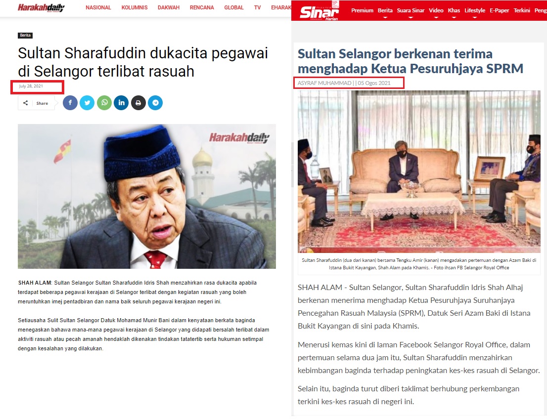 Susulan itu pada 5 Ogos lalu Sultan Selangor, Sultan Sharafuddin Idris Shah Alhaj berkenan menerima menghadap Ketua Pesuruhjaya Suruhanjaya Pencegahan Rasuah Malaysia (SPRM), Datuk Seri Azam Baki di Istana Bukit Kayangan. Itulah cara SPRM bekerja sekarang.