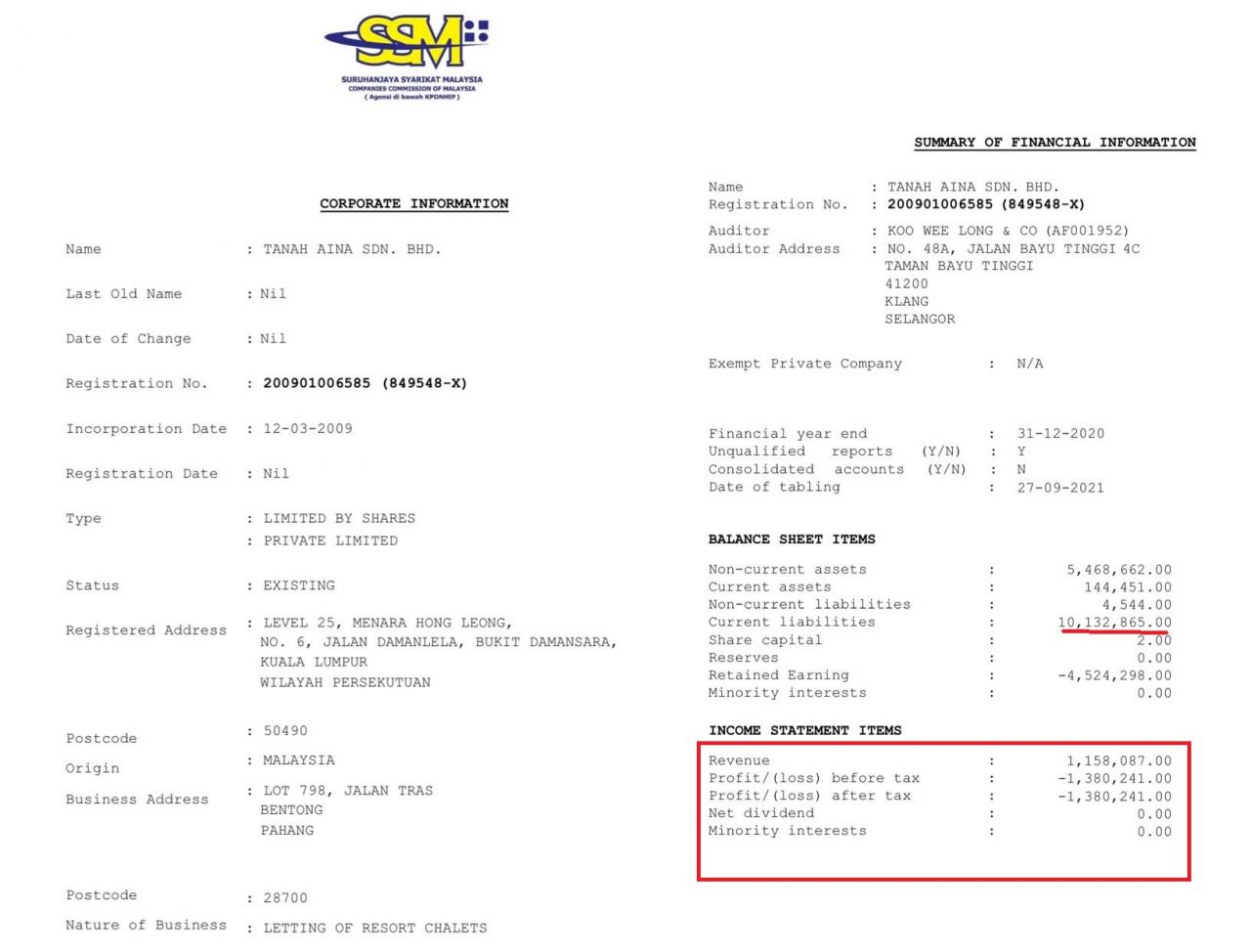 Pendapatan tahunan syarikat lebih RM 1 juta. Sekalipun diisytiharkan rugi namun liabliti