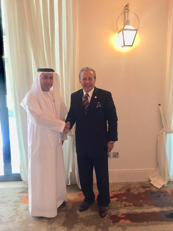YB Menteri Luar Negeri, Dato’ Sri Anifah Haji Aman pada 12 Februari 2018 telah mengadakan perbincangan bersama TYT Sultan Saeed Al Badi, Menteri Perundangan UAE di Hotel Al Naseem Jumeirah, Dubai. Kehadiran YB Menteri Luar ke perbincangan tersebut diiringi oleh TYT Duta Besar Malaysia ke UAE, Konsul Jeneral Malaysia ke Dubai serta pegawai-pegawai dari Konsulat Jeneral Malaysia di Dubai. Pegawai-pegawai tertinggi dari Kementerian Perundangan UAE turut terlibat dalam perbincangan selama 30 minit tersebut.