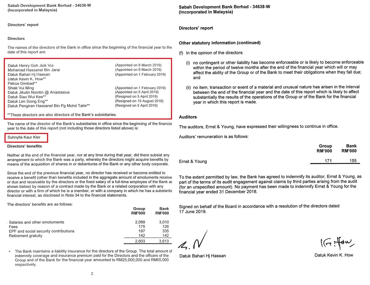 19 Julai lalu Sunhylla Kaur Kler bekas ketua pegawai eksekutif (CEO) SDB Asset Management Sdn Bhd anak syarikat kepada Sabah Development Bank Berhad (SDB) bersama dua lagi individu direman lima hari bagi siasatan Suruhanjaya Pencegahan Rasuah Malaysia (SPRM) kerana disyaki menerima rasuah lebih RM24 juta.