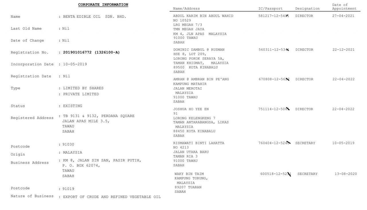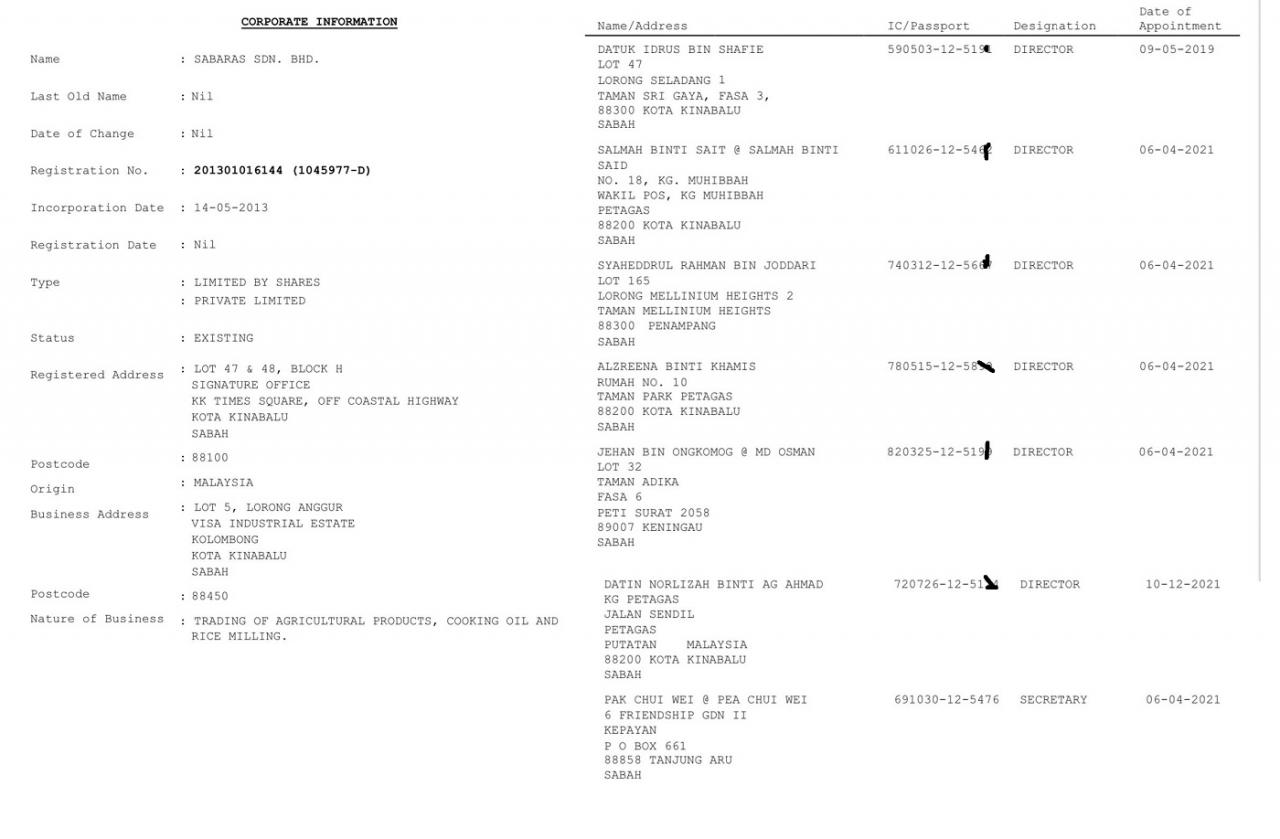 Syarikat Intipati Minyak Sdn Bhd dikatakan ada kaitan dengan pimpinan DAP Sabah Datuk Frankie Poon Ming Fung. Semakan menunjukkan Syarikat Intipati Minyak Sdn Bhd sehingga kewangan berakhir Disember 2020 syarikat bermodal RM3 juta ini rugi RM2.2 juta berbanding ‘Revenue’ RM1.2 juta. Sejak memulakan kilang ini syarikat sudah rugi RM3.2 juta.