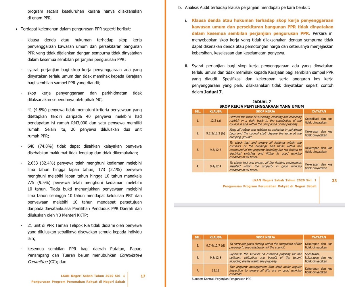 Laporan Ketua Audit Negara Tahun 2020 Siri 1 jelas membuktikan kelemahan pelaksanaan penyenggaraan PPR oleh MC.