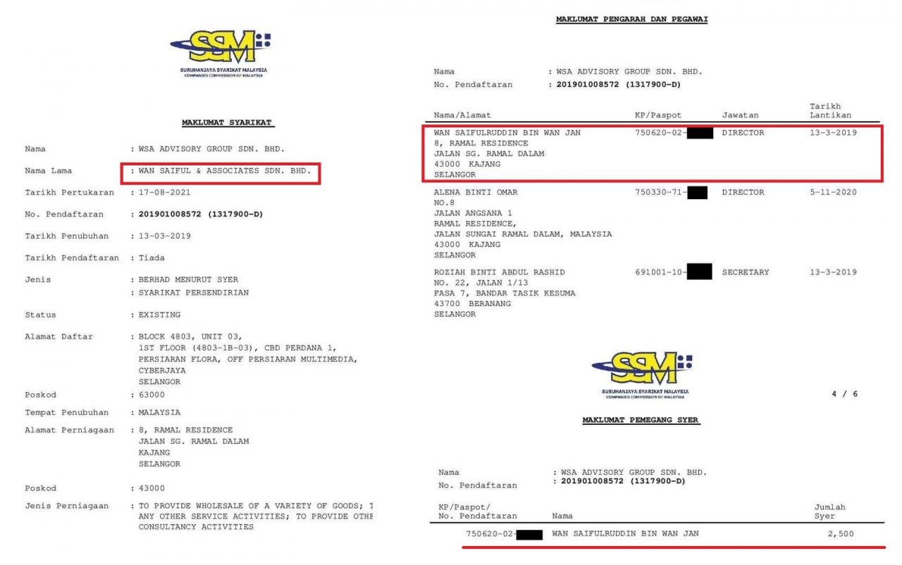 Bukti syarikat dan ke akaun syarikat milik Wan Saiful Wan Jan