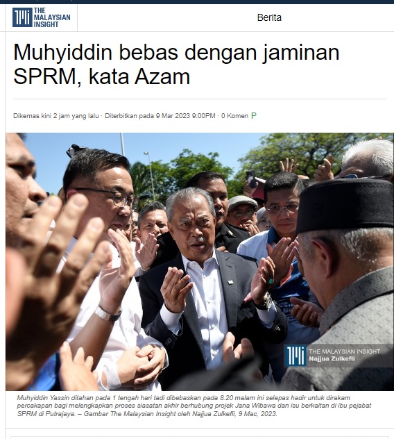 Namun tindakan Tan Sri Azam Baki Ketua Pesuruhjaya SPRM membebaskan Muhyiddin dengan jaminan SPRM dan dikehendaki hadir ke mahkamah untuk menghadapi pertuduhan esok adalah sesuatu yang tidak wajar.