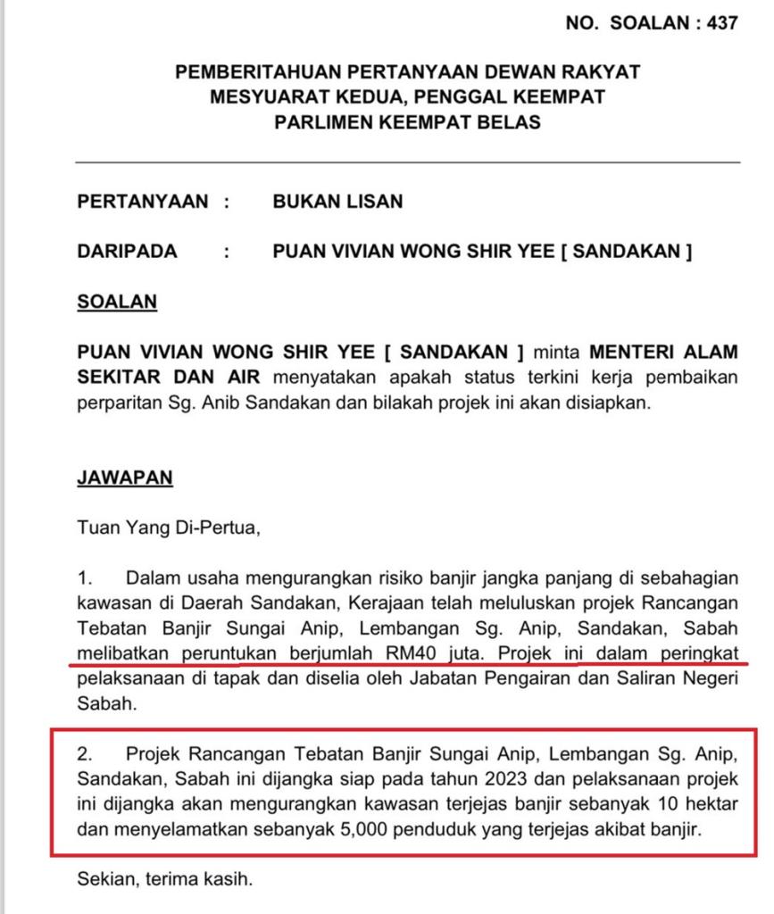 RTB Sg Anip Sandakan antara Projek Tebatan Banjir Penting di Sabah