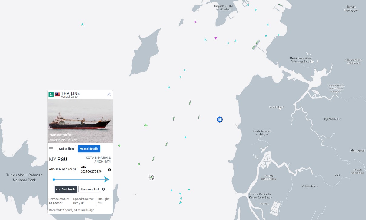 Checks on the morning of the 5th of July via MarineTraffic.com revealed the Thailine had been moored at Sepanggar Port, 9 days after its arrival in Sabah and 12 days after it’s departure – It takes roughly 2 days for Vessels departing from Port Klang to arrive in Sabah.