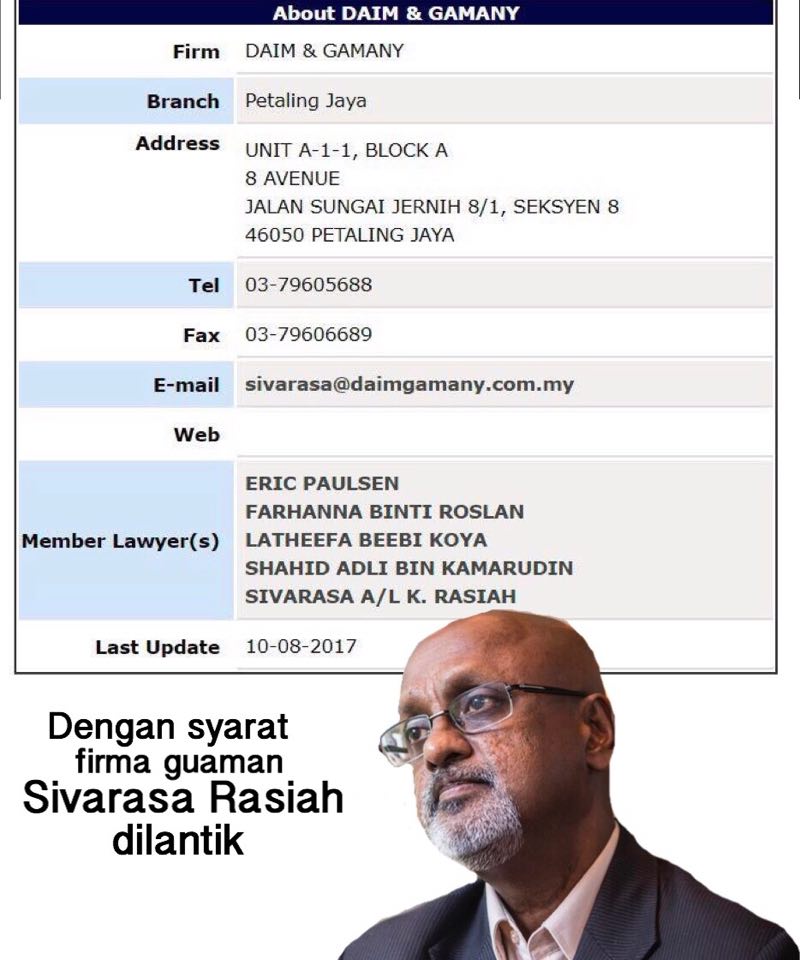 Sementara itu Peguam PKR yang juga Ahli Parlimen Subang, Sivarasa dan firmanya, Daim & Gamany yang terlibat langsung dalam hal tanah Ijok ini secara Consent judgement di Mahkamah Persekutuan (klausa peneroka mesti terima Daim & Gamany sebagai firma untuk mewakili mereka) kepanasan dengan saranan peneroka Ijok mereka perlu ditahan serta akaun dibekukan.