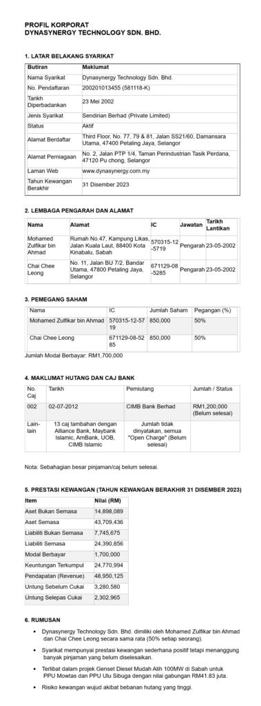 4 syarikat penyedia genset diesel yang menerima kontrak untuk 8 lokasi PPU (Pencawang Pembahagian Utama) di Sabah dan Labuan dalam projek penjanaan 100MW. Sekalipun jika kita fokus kepada perbincangan penyewaan genset di Sabah kosnya tetap beratus juta untuk 6 bulan.
