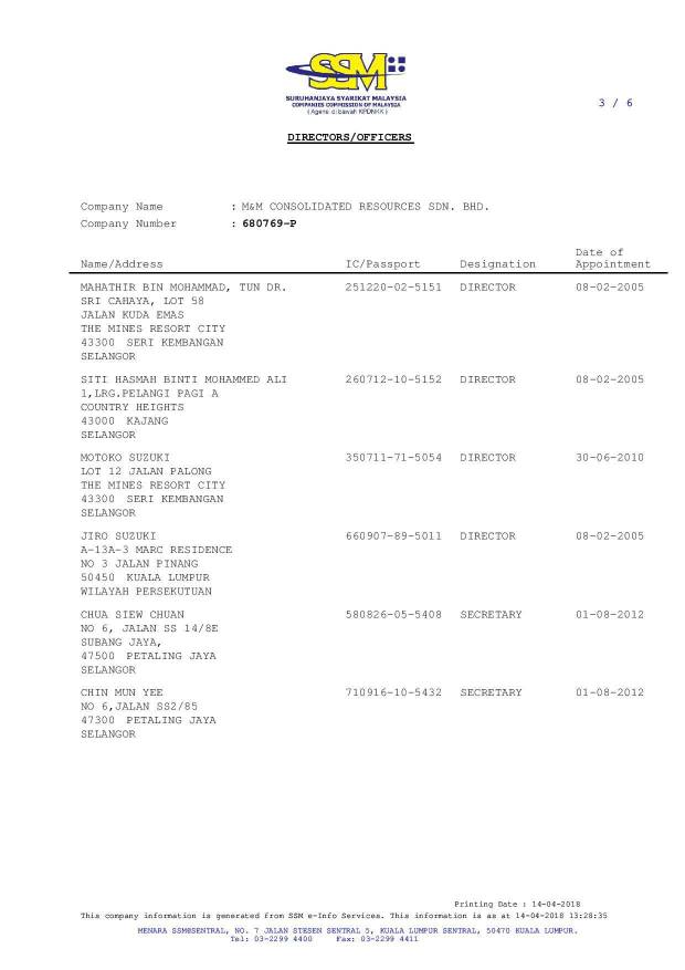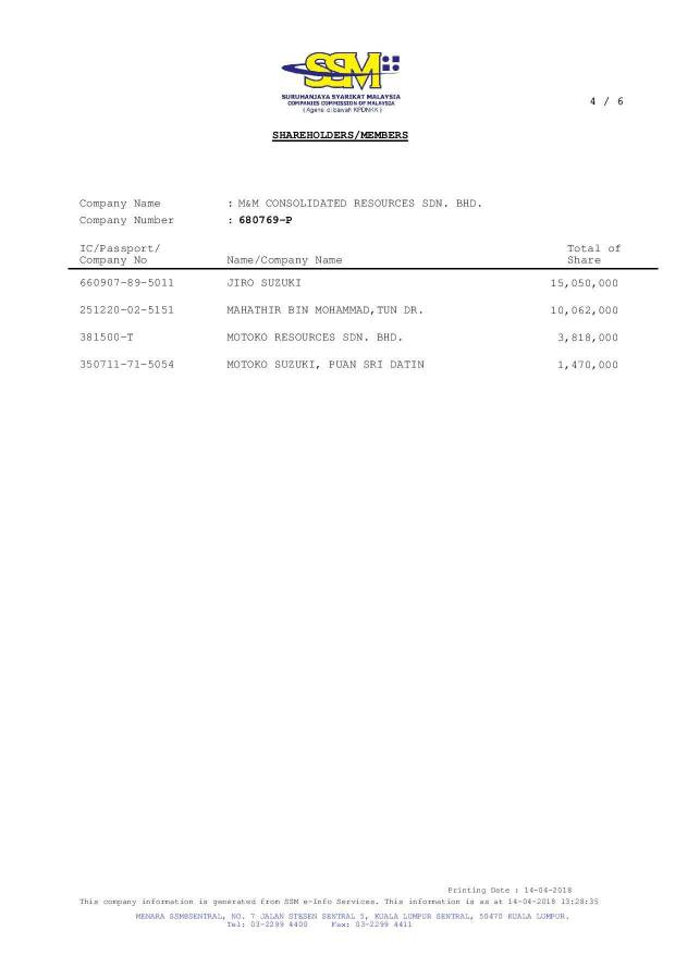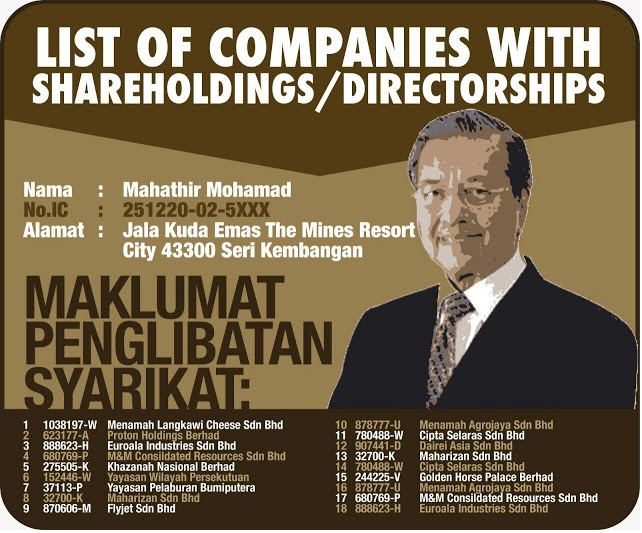 Tun Mahathir juga merupakan pengarah syarikat itu.