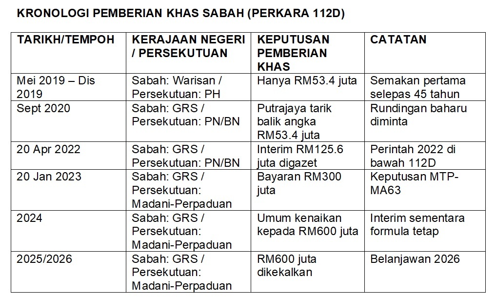 Presiden Warisan, Datuk Seri Shafie Apdal kembali memainkan sentimen kononnya pentadbirannya “terpaksa” menerima kadar Pemberian Khas hanya RM53.4 juta kerana hutang negara ketika era kerajaan Pakatan Harapan. Namun dokumen rasmi kerajaan Negeri Sabah pada Oktober 2019 membuktikan sebaliknya — kerajaan Warisan bersetuju, menerima dan berterima kasih terhadap amaun tersebut, tanpa sebarang bantahan terhadap hak 40% hasil Sabah di bawah Perkara 112D Perlembagaan Persekutuan.